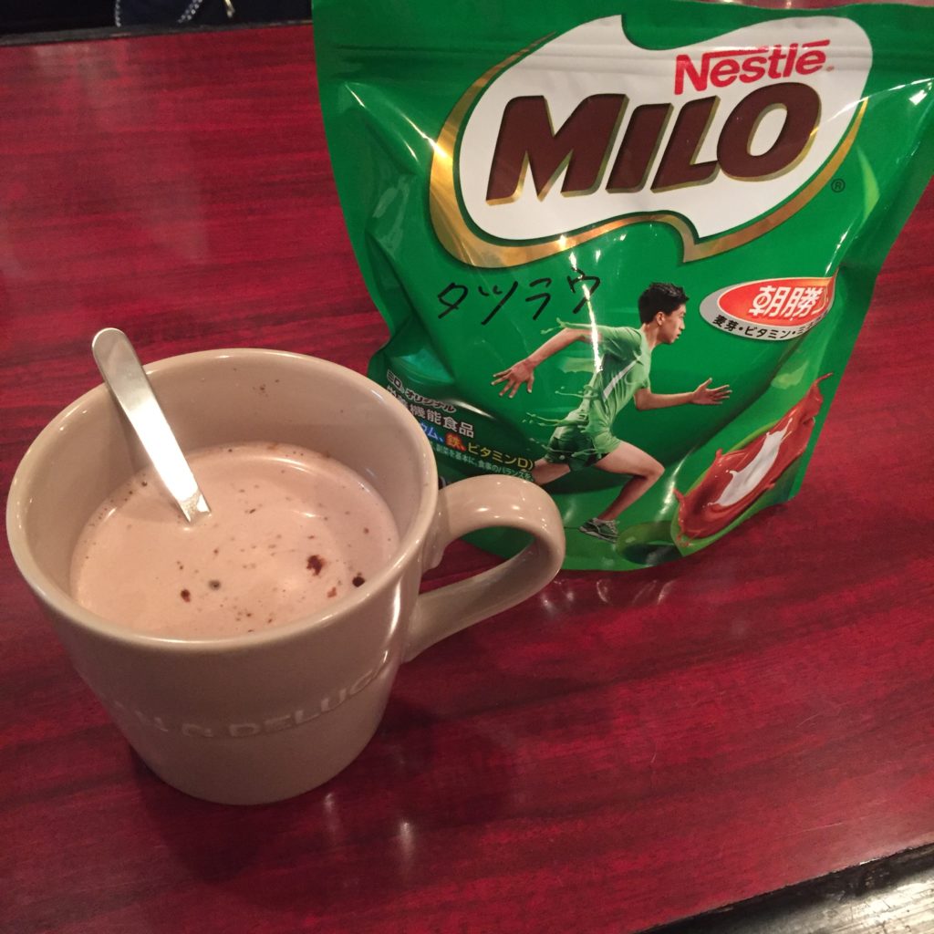 そしてキープしているミロをいただく、私はホットミロ派です。名古屋タツラウ会のメンバー(鉄砲玉含む)は、会長がキープしているミロをいつでも自由に飲んでもらって構いません。無くなったら補充するので連絡ください。(※但し牛乳代は別途カフェにお支払いください。)
