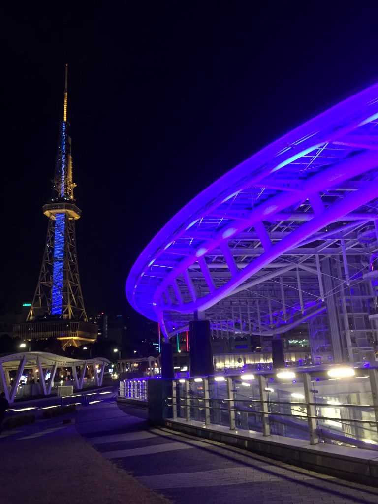 ギター師匠様は、おそらく昼間に訪問されたと思いますので、夜の名古屋テレビ塔と、すぐそばのオアシス21の様子をどうぞ。