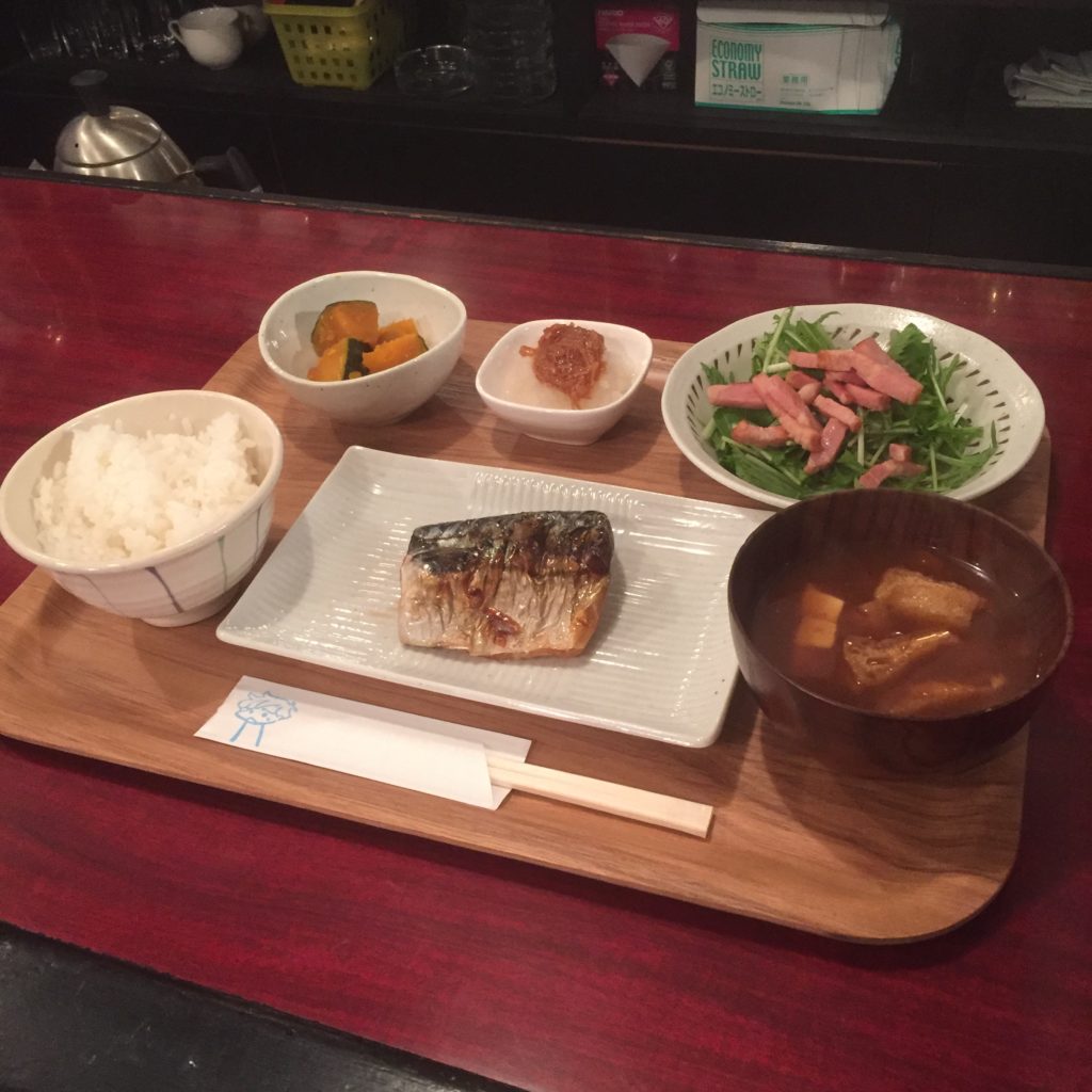 鯖の塩焼き!水菜のサラダ!かぼちゃ煮!赤だし!アツアツごはん!