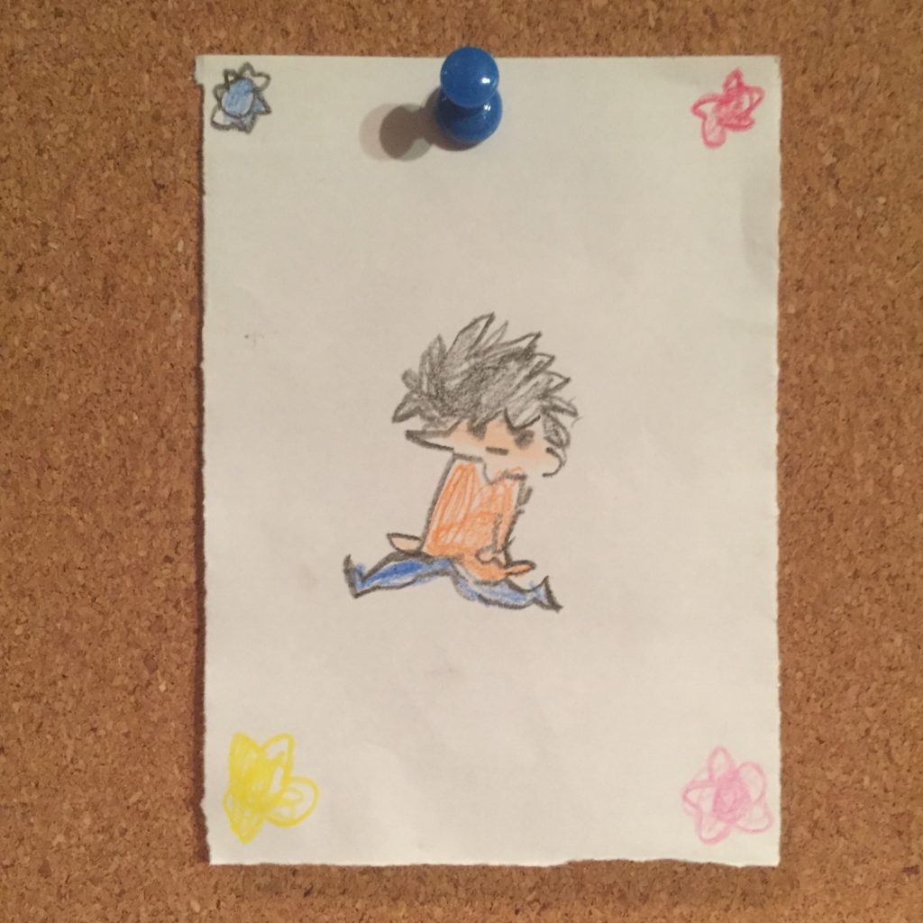 猫のお医者さんの相方?友だち?のミツヒロくんをお客さんが描いてくれました。他にも作品があり、カフェに展示中です。