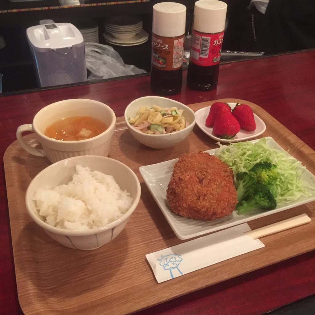 コロッケ定食、私はウスターソースかトンカツソースなら、トンカツソース派です。