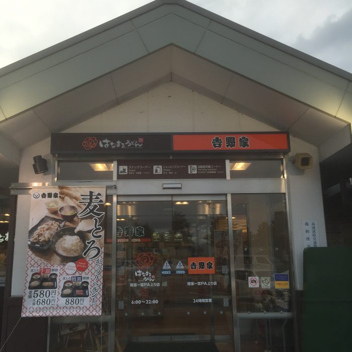 デストロイラジオで話題の店に行く、その45、はなまるうどん(尾張一宮PA上り店)
