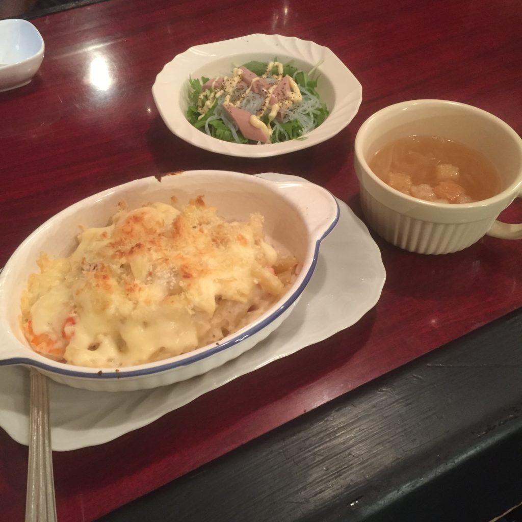 出し忘れかな?グラタン+サラダ+スープの晩ご飯でした。