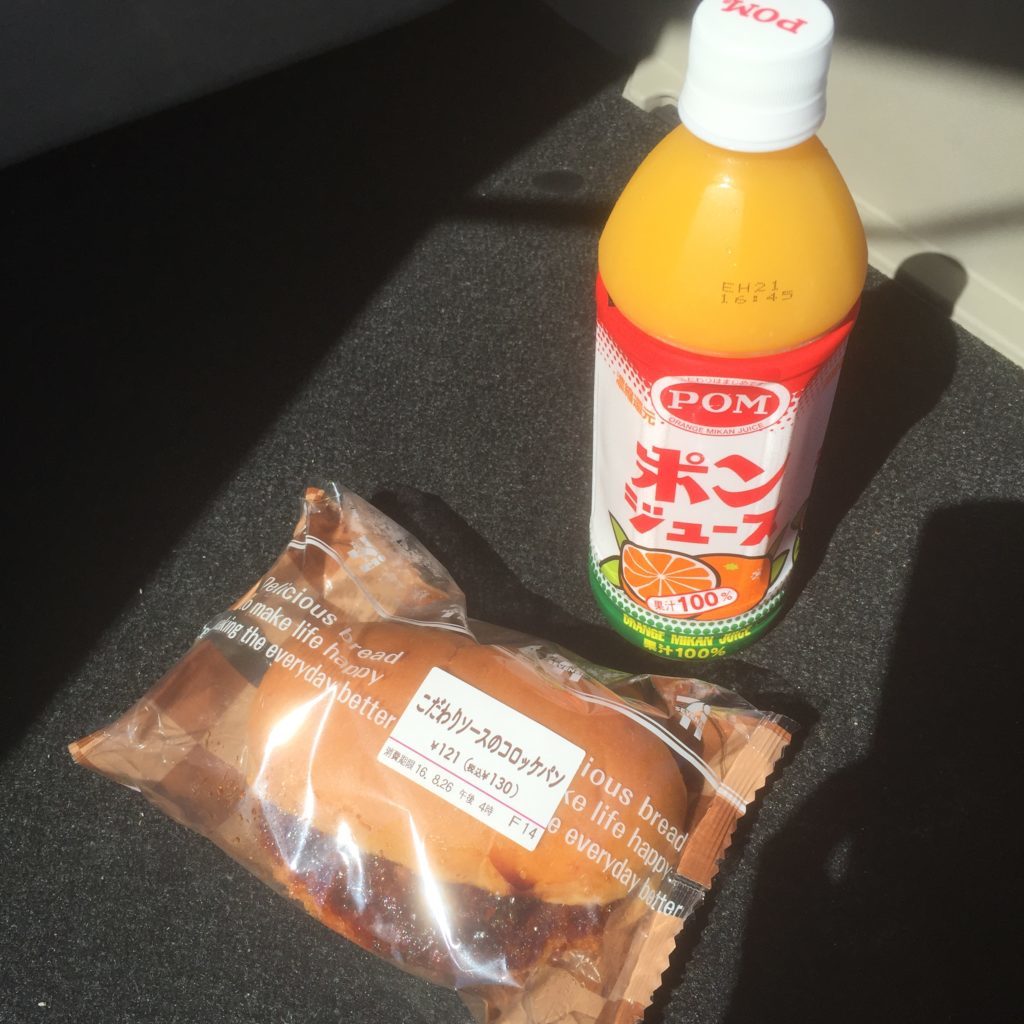 JOHNJさん曰く、ポンジュースに合うのは絶対コロッケパン!との事。焼きそばパンではダメらしい。