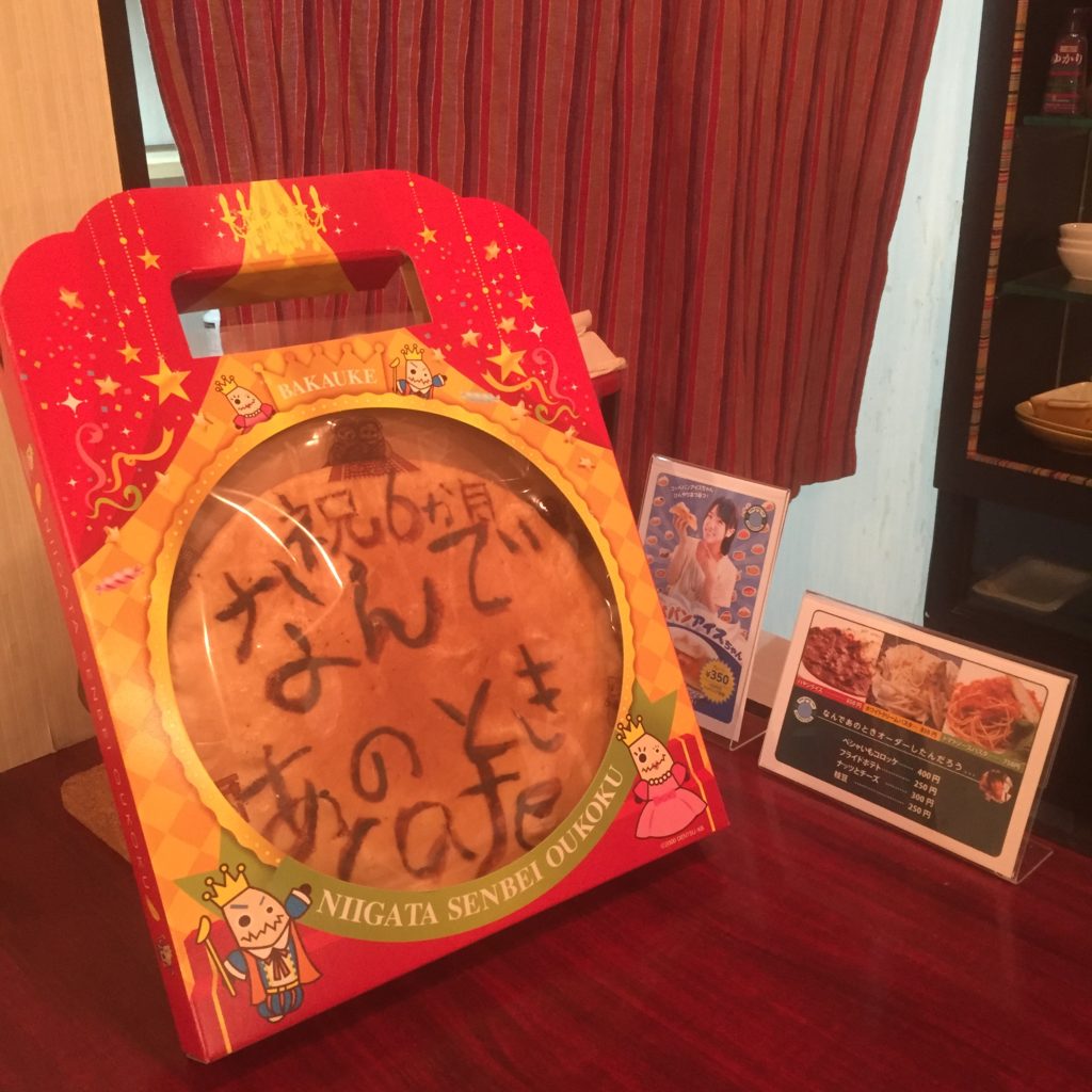 もうすぐ6ヶ月を祝って、お客さんが「なんであのときcafe」せんべいを持ってきてくれました。