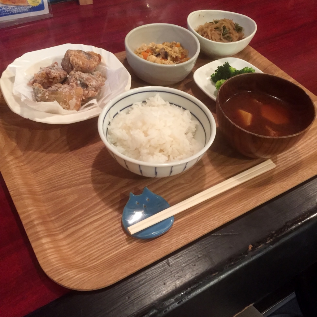 トクマスん家の晩ご飯定食は、サバの竜田揚げでした。