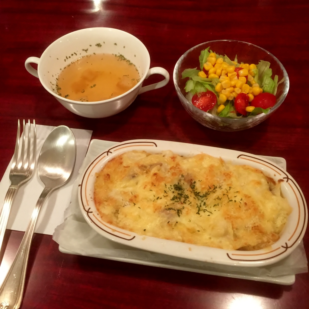 トクマスん家の晩ご飯定食は、グラタンでした。