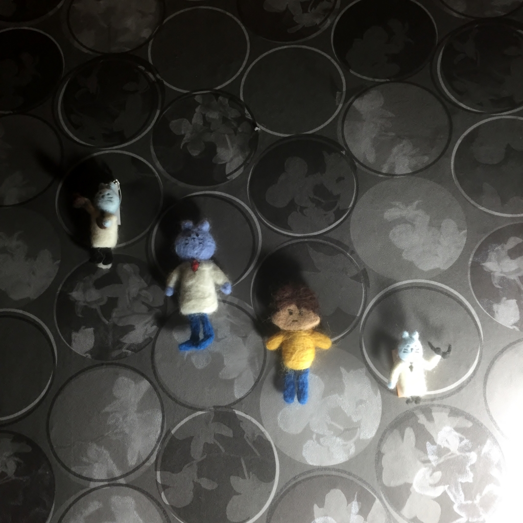 入り口を入ってすぐの壁に貼り付けられた猫のお医者さんたち。