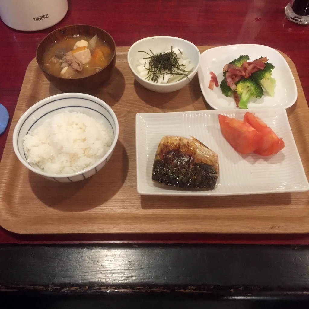 私が食べた今年最初のトクマスん家の晩ご飯定食は、鯖の塩焼き、けんちん汁でした。