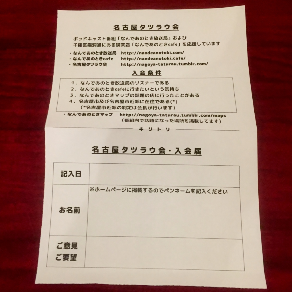 名古屋タツラウ会の入会届をバージョンアップしました。記入したら半分に切ってトクマスターに提出してください。