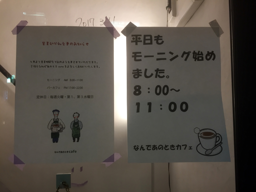 カフェの入り口の張り紙です。モーニングを推している。