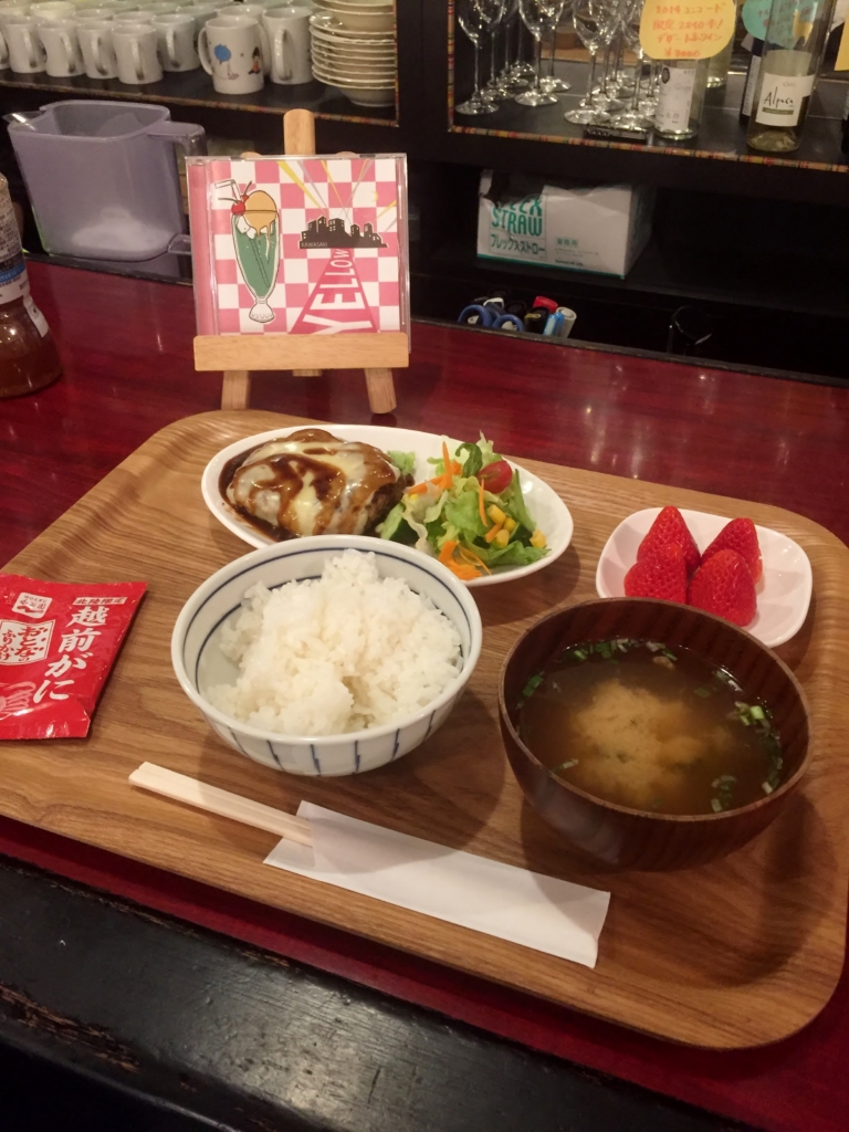トクマスん家の晩ご飯定食は、チーズハンバーグです。