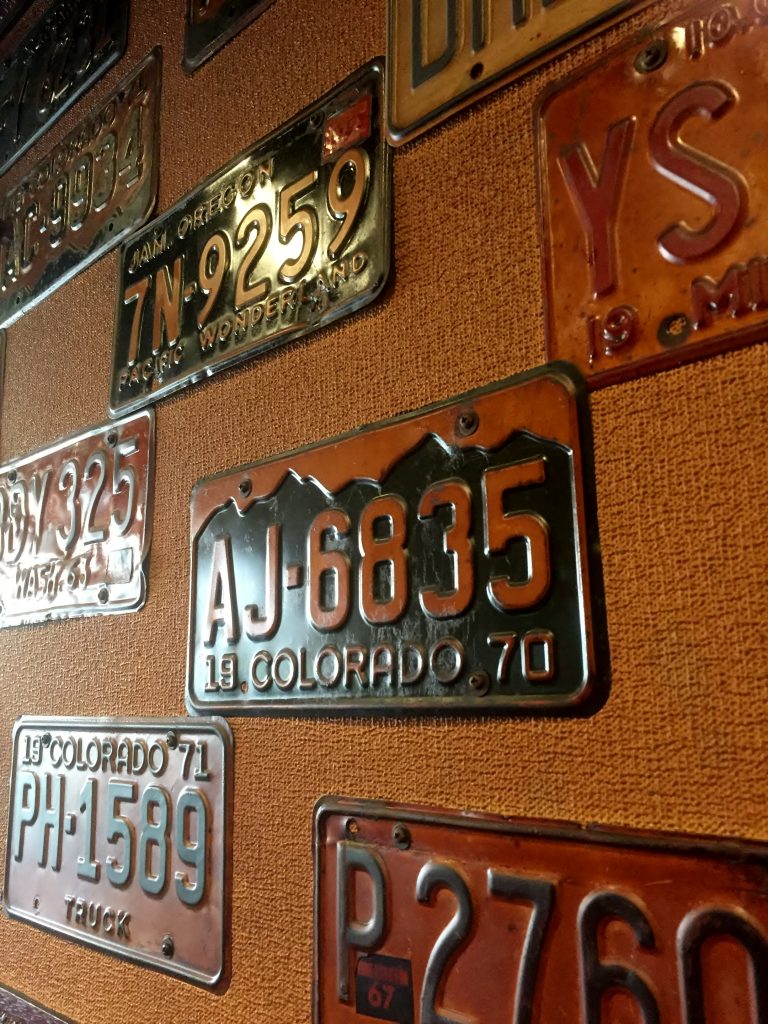オーナーの趣味なのかアメリカのナンバープレートがたくさん飾ってあります。