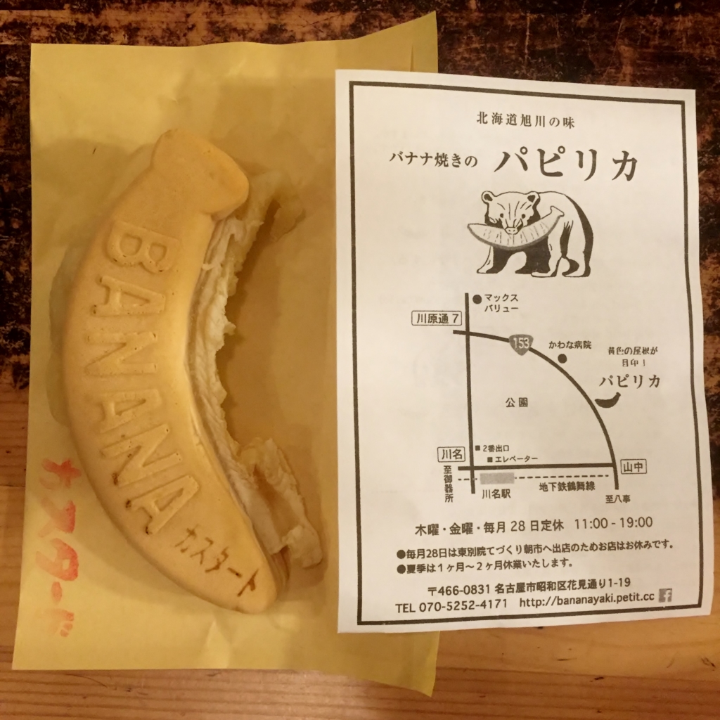 お客さんに北海道旭川の味、バナナ焼き(カスタード)をいただきました。モチモチでウマウマでした。