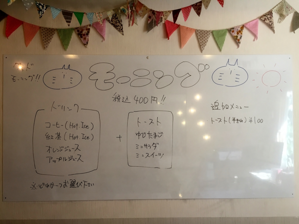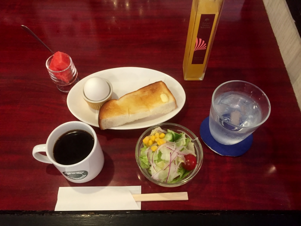 久しぶりにモーニング。追加メニュー、トースト(半きれ)100円。