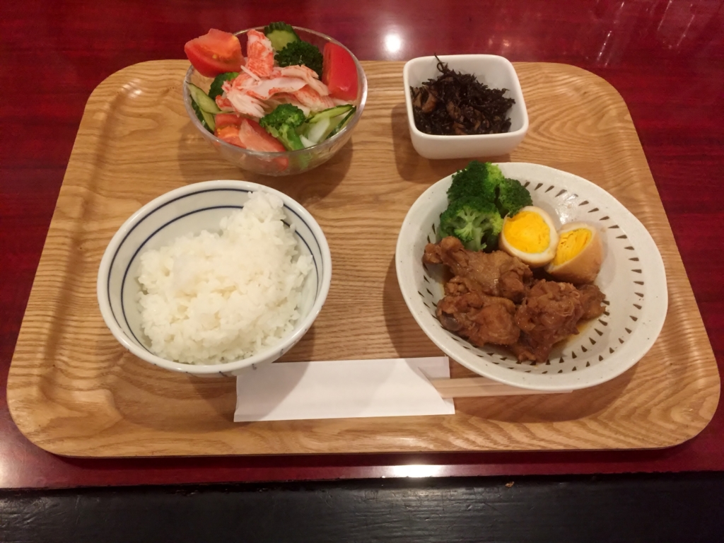 晩ご飯定食は、鶏肉のさっぱり煮です。