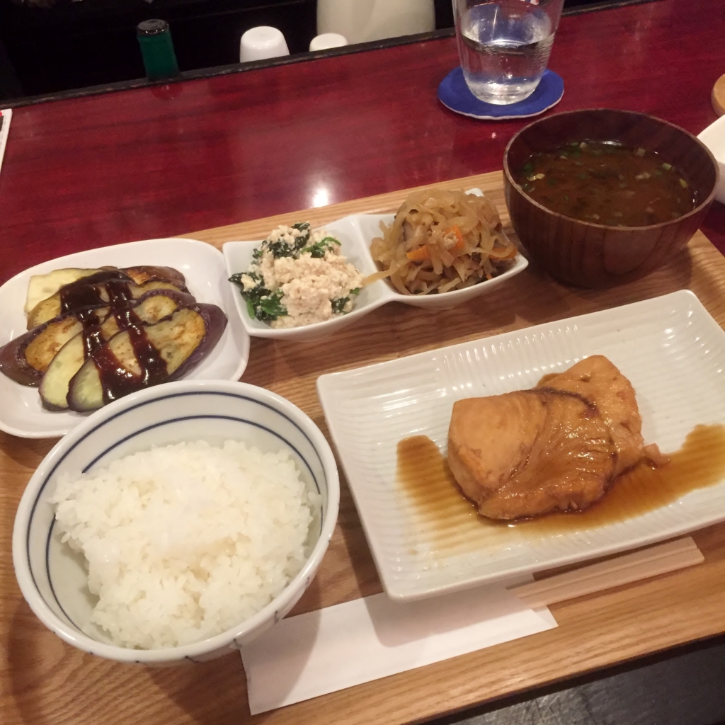 晩ご飯定食は、メカジキの照り焼きです。