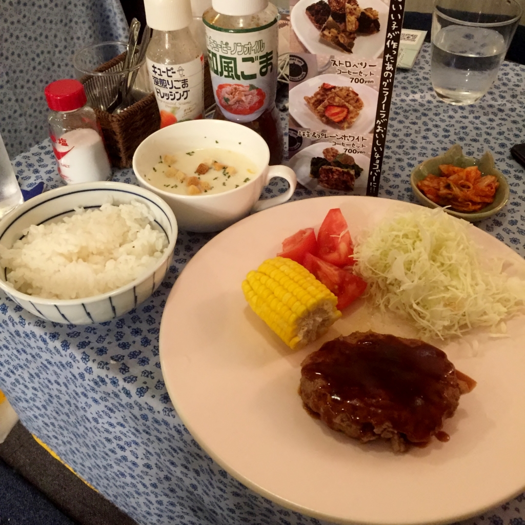 晩ご飯定食は、ハンバーグです。