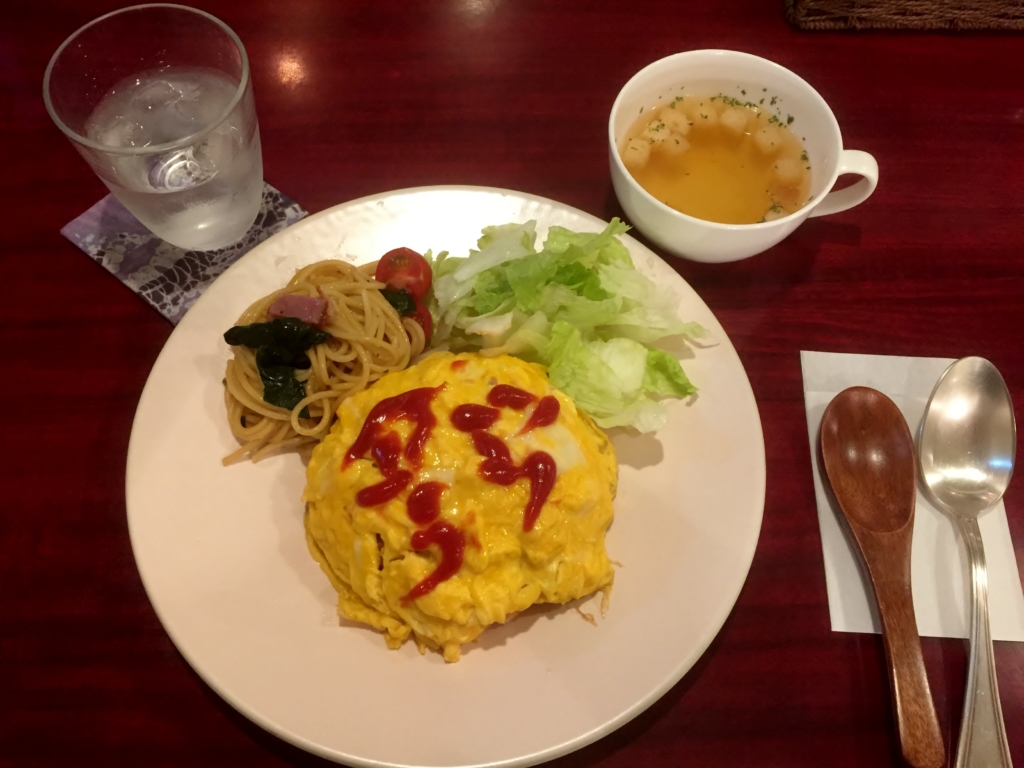 トクマスん家の晩ご飯定食は、オムライスです。メイドカフェみたいに名前をアヤコーホーさんが書いてくれました。