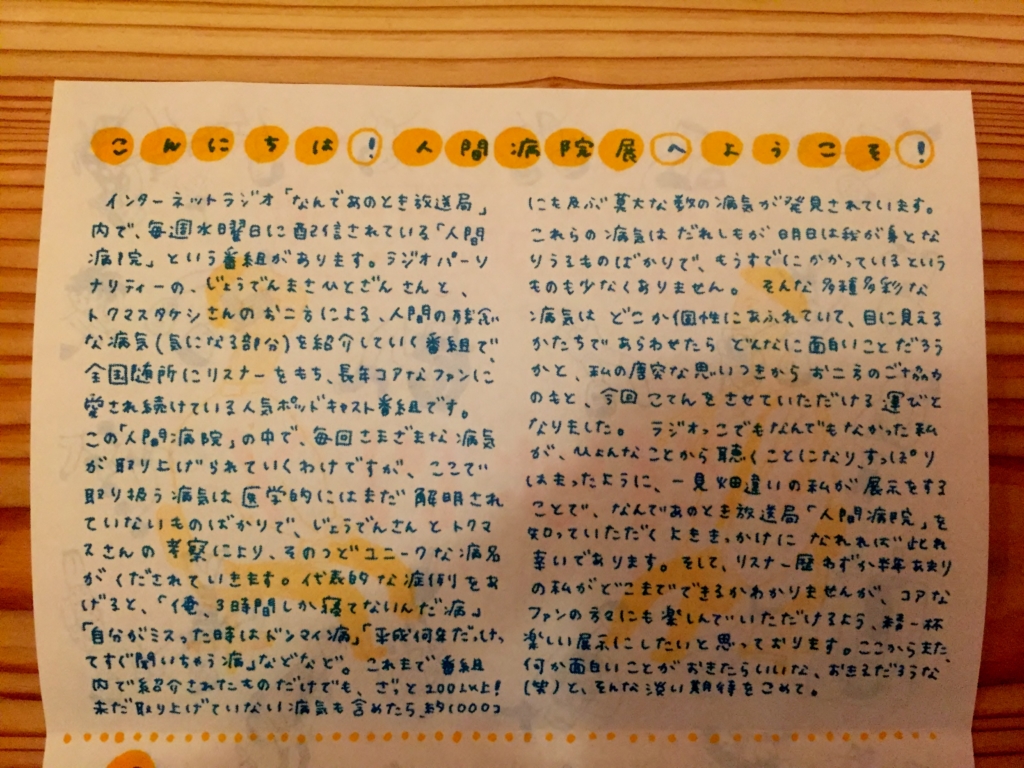 カフェ連休でネタがないので「人間病院個展」チラシを貼っておきます。現物はカフェにありますのでぜひ手にとってみてください。