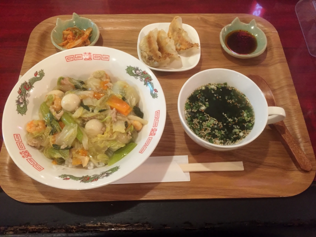 ウソです。豪華中華定食!中華飯、餃子、キムチ、わかめスープでした。