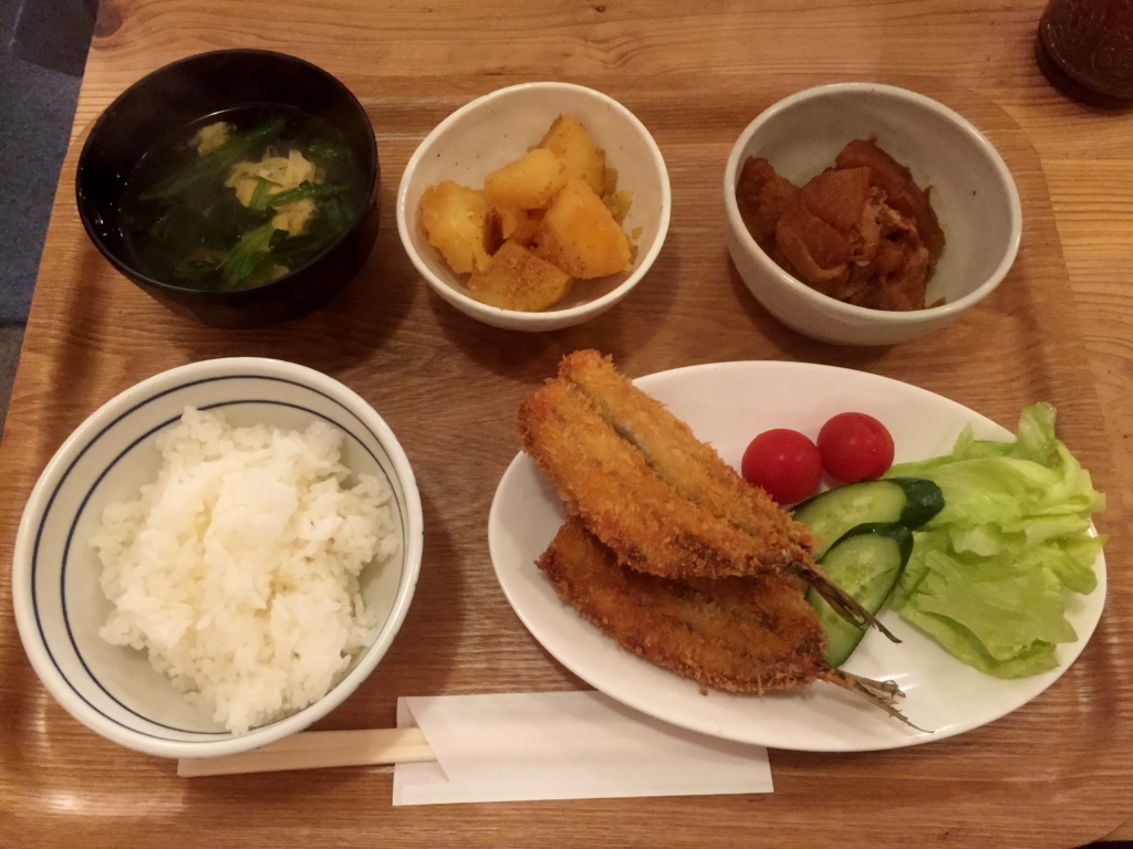 晩ご飯定食は、アジフライです。今週もごちそうさまでした。