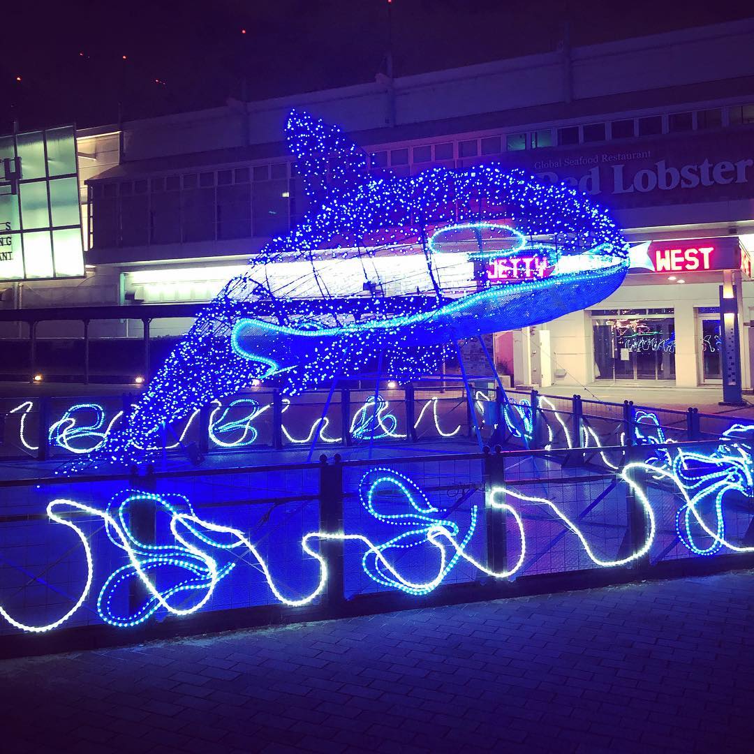 近くにあった電飾。クジラかなと思ったけどシャチかも。名古屋港だからシャチかな。