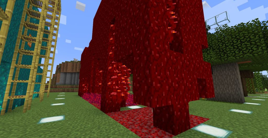 葉っぱのように自動的に消えてくれないネザーウォートブロックもブロック化してくれた。